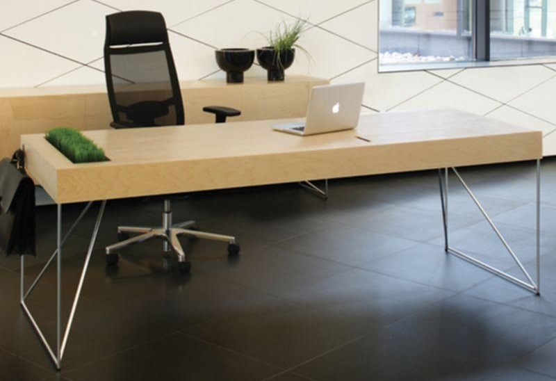 Bureau de direction avec piètements métalliques et plateau en aggloméré plaqué. Sobre et élégant, la forme élancée du piètement vient structurer et alléger votre espace de travail.