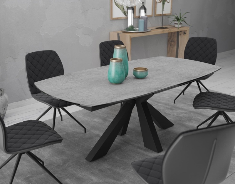 La table Tempa proposée par BM Bureau mesure deux mètres de long et dispose d’une rallonge centrale de 60 cm. Ouverte, la table de repas Tempa mesure ainsi 260cm. Sa largeur au centre est de 100cm ce qui permet de s’installer confortablement. Son mécanisme d’ouverture est simple et efficace. Il suffit de glisser le plateau vers soi et la table s’ouvre en deux et laisse découvrir la rallonge qui se soulève et s’installe au centre. Son piétement en croix est en acier laqué noir et son plateau est en céramique marbre blanc mat collée sur verre. Les bouts de table sont arrondis ce qui est la signature de ce modèle.