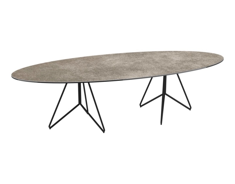 La table Elea est simple et minimaliste : un piétement en acier laqué noir étoilé en deux parties et un plateau en céramique. La forme oblongue du plateau donne à la table Elea un style minimaliste et intemporel. Le plateau est en céramique fabriquée en Espagne collée sur un vitrage de 6mm afin de lui donner une excellente résistance. Sa hauteur est de 38cm et sa longueur 145cm. Elle se décline en 4 couleurs de céramique. Présentée ici en céramique argile.